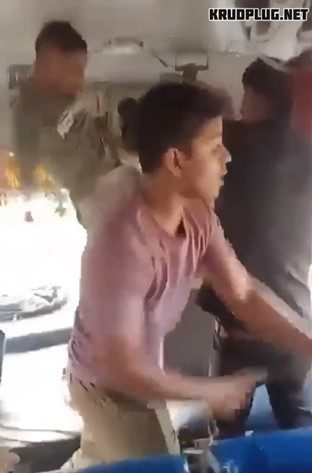 The other two attackers punched and kicked the driver repeatedly. The bus conductor, wearing a black shirt, tries to help the driver, but he is attacked by the group. When the girl continues to be assaulted, the bus conductor attempts to protect her as well. However, the relentless attackers resort to dragging the girl’s hair.