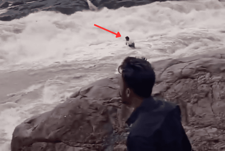 The chilling video of the incident has circulated widely online. The clip shows Tudu, dressed in a white shirt and dark trousers, standing on a rock surrounded by rushing water. Moments later, the current intensified while onlookers frantically tried to throw him a rope, but their efforts failed, and the surging flow dragged away Tudu.