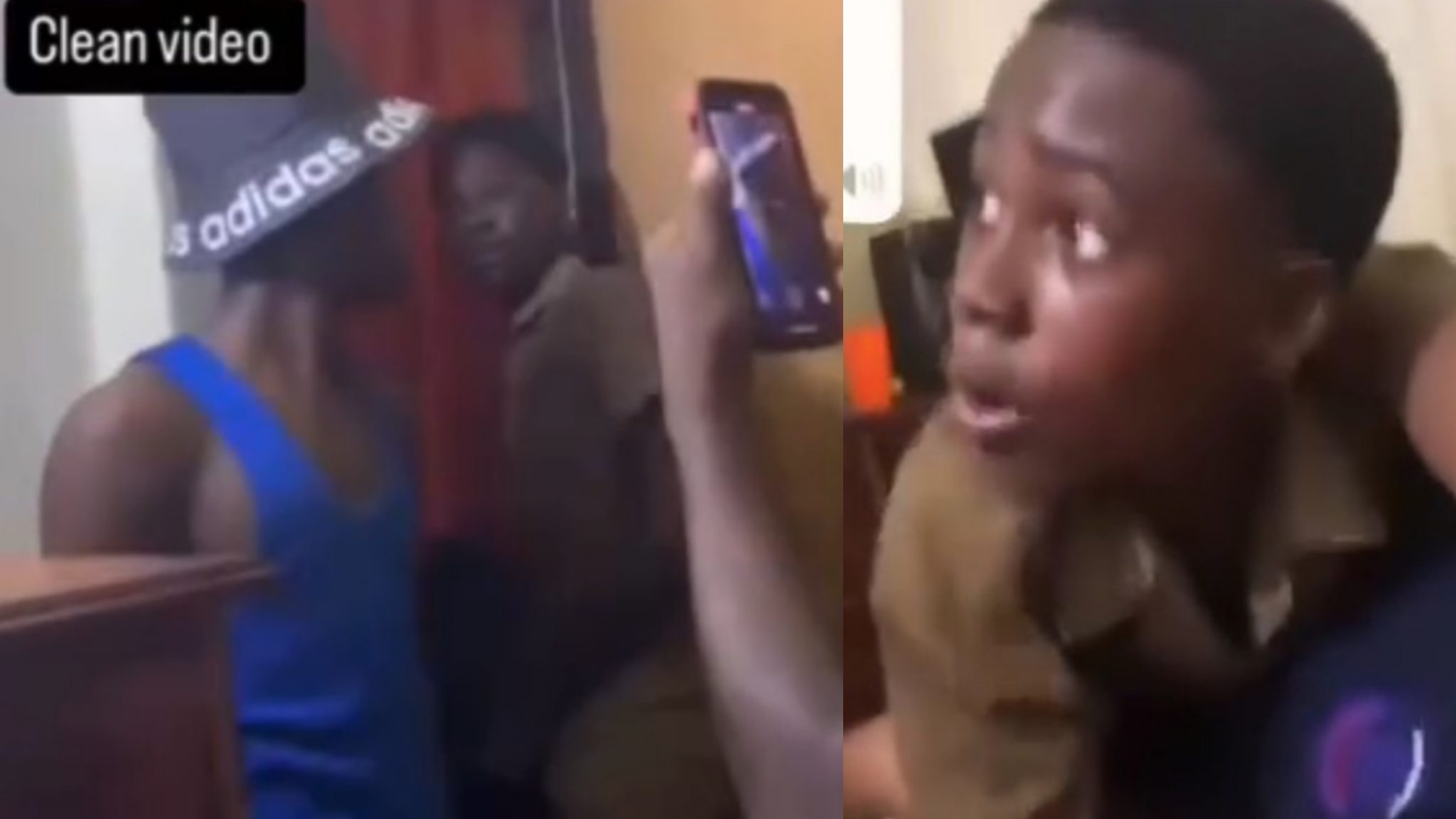 At a residence, four of the adolescent boys—among them the schoolgirl—are visible wearing their school uniforms.