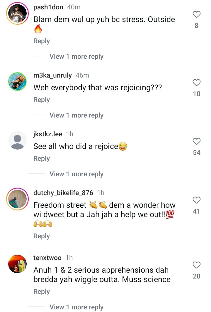 Amid responses that the post has been garnering across Instagram, some viewers theorised that spiritual forces had a hand in the entertainer’s release. One person stated, “1 & 2 serious apprehensions dah bredda yah wiggle outta. Muss science.”