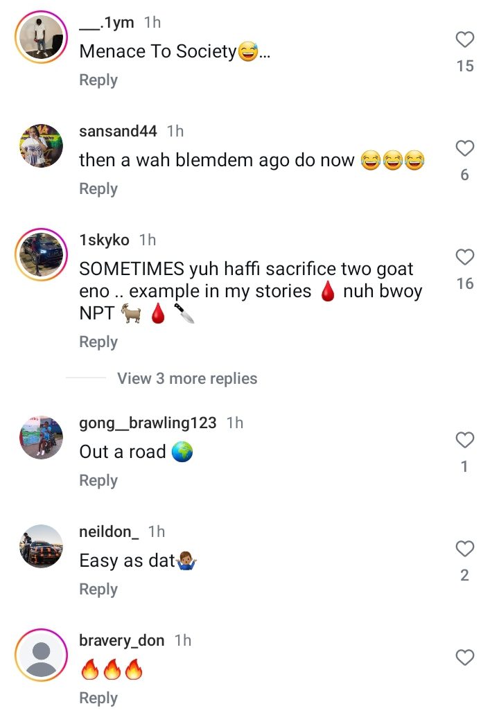 A third Instagram user wrote, ” Yuh haffi sacrifice two goat eno .. example in my stories 🩸 nuh bwoy NPT 🐐 🩸 🔪.”