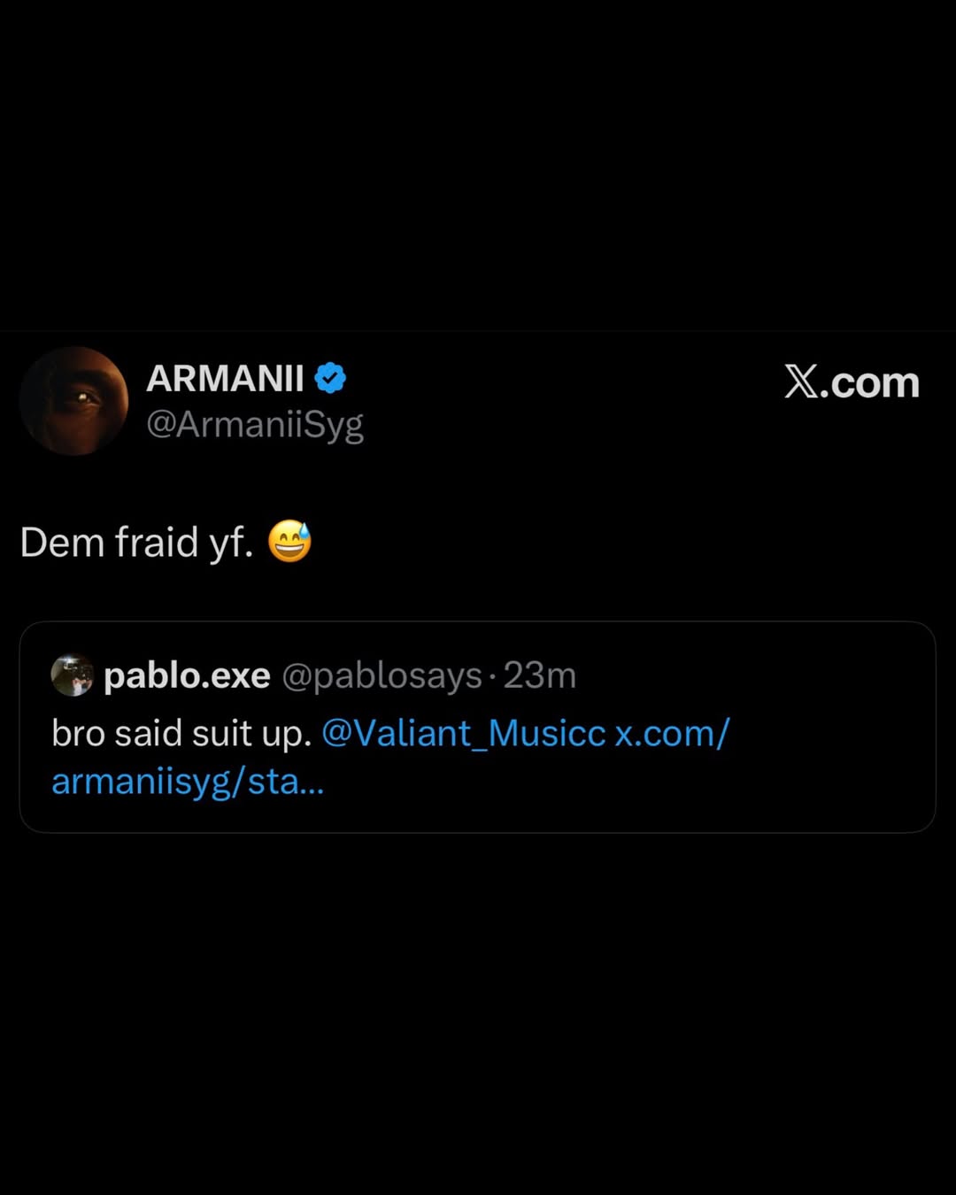 The controversy surfaced during a Twitter Spaces discussion, where Armanii openly threatened DJ Mac and used a derogatory term while addressing him directly. While speaking on the platform, Armanii also took repeated jabs at Valiant, making it clear that he was ready for a lyrical clash. He stated that he was not intimidated by Valiant’s associates and mocked the trajectory of Valiant’s career.