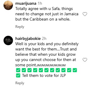 Another added, “Totally agree with you, Safa; things need to change not just in Jamaica but the Caribbean as a whole.”