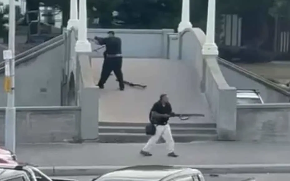 One of the armed men descended the bridge and approached a grassy area, drawing nearer to the celebrations. Footage later shows when an onlooker cautiously approached the gunman and then wrestled the gun out of his hands. The bystander, later identified as 43-year-old Ahmed al Ahmed, pointed the gun at the perpetrator, who retreated at the bridge. Ahmed’s bravery was also captured on camera and has been circulating online.