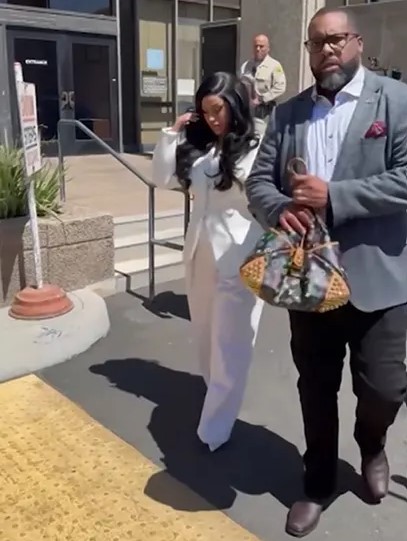 Cardi was seen carefully exiting the court on Wednesday. Footage of the rapper dressed in a sleek all-white pantsuit is turning heads online. Cardi accessorised her outfit with a $73,000 diamond-encrusted watch gifted by her boyfriend, NFL star Stefon Diggs, and a sparkling Louis Vuitton bag.
