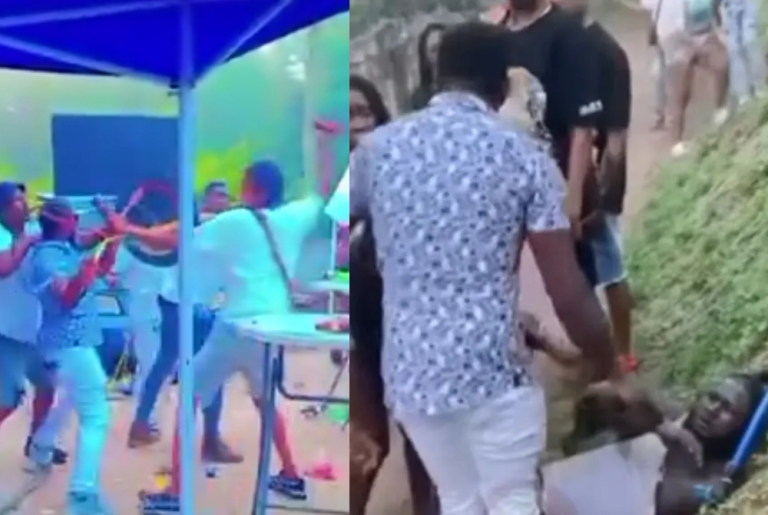 Footage shows the policeman, dressed in a blue shirt and white jeans, fighting multiple men. Onlookers attempted to break up the brawl, but the fight continued. According to the Jamaica Observer, the fight only ended when the cop brandished his licensed firearm. The group quickly fled the scene, but one of them reportedly fell on the ground while attempting to run away.