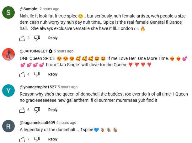 On YouTube, some fans responded with admiration. One fan commented, “Jesus, Spice really stepping on these girls necks! Love it.” Another fan expressed, “Reason why she’s the queen of dancehall the baddest too ever do it of all time 1 Queen no gracieeeeeeeee new gal anthem fi di summer mummaaa yuh find it.”
