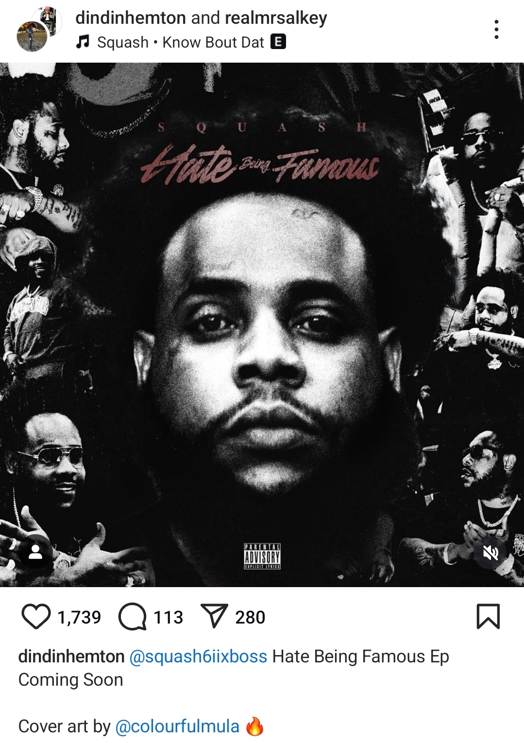 Amid his legal challenges, Dancehall artiste Squash intends to grace his fans with an EP titled Hate Being Famous. The upcoming project was announced by producer and collaborator ‘DinDin,’ who revealed the cover art for the EP in an Instagram post.