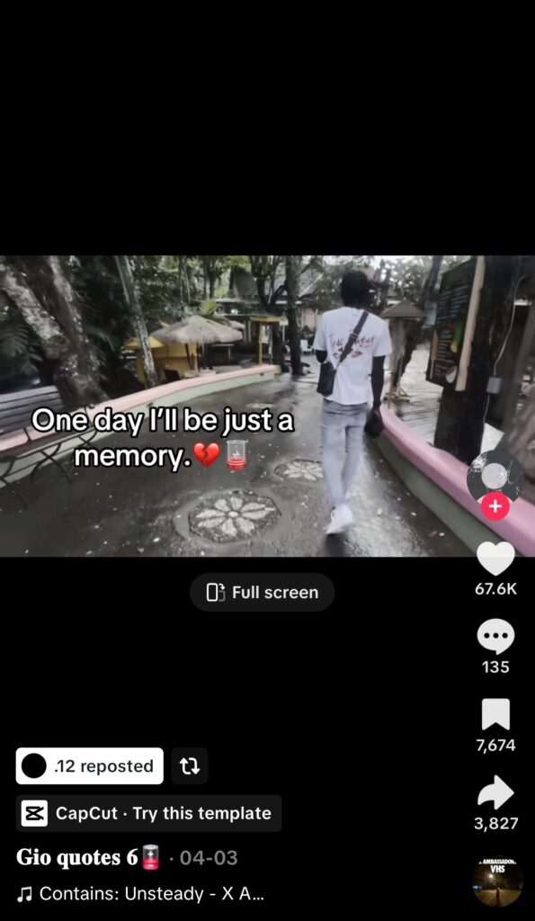 Since the video was removed, there are no videos posted on the page. However, on Saturday, the individual reposted a depressing video with the quote, “One day I’ll be just a memory.”