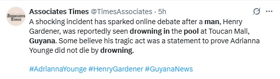 According to News Source Guyana, Gardener worked as a maintenance man at the facility, which was owned by his family. His relatives grew concerned after he failed to return to his living quarters the previous night.
