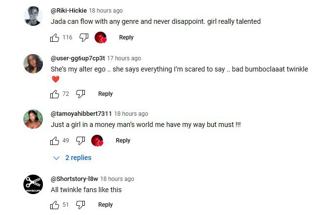 In response to the song, fans shared their joy and approval in the comments, with one fan saying, “Jada can flow with any genre and never disappoint. girl really talented.”