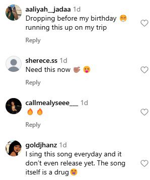 Fans flooded the comments with excited responses. Many praised her for her musical talent. One person commented, “Jada make music for the baddies.” another IG user commented, “Waiting patiently for it to drop after dat me a blast it inna me car every chance I get.”