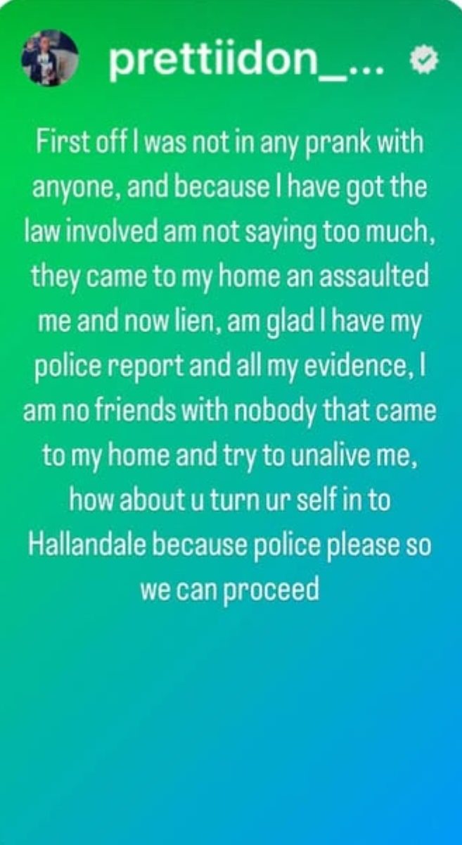 However, Pretti Don shut down his claims, reiterating she was assaulted, and involved in the law. She firmly denied that she was part of a prank and urged Blamdem, who she said was not her friend, to turn himself in to the Hallandale Beach Police Department. Prettii Don later expressed that she was trying to find a new place to live.
