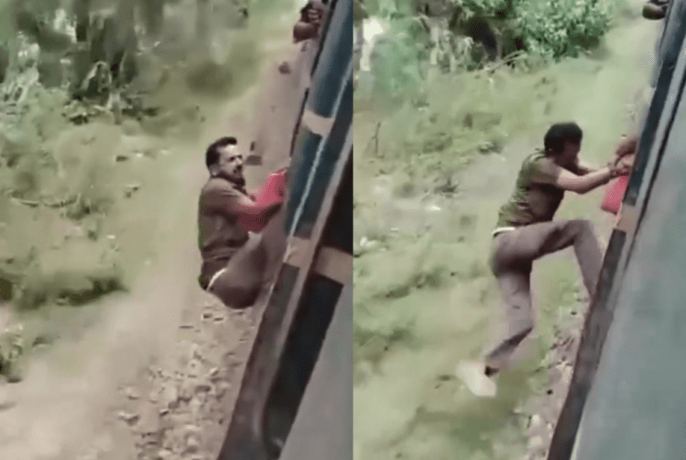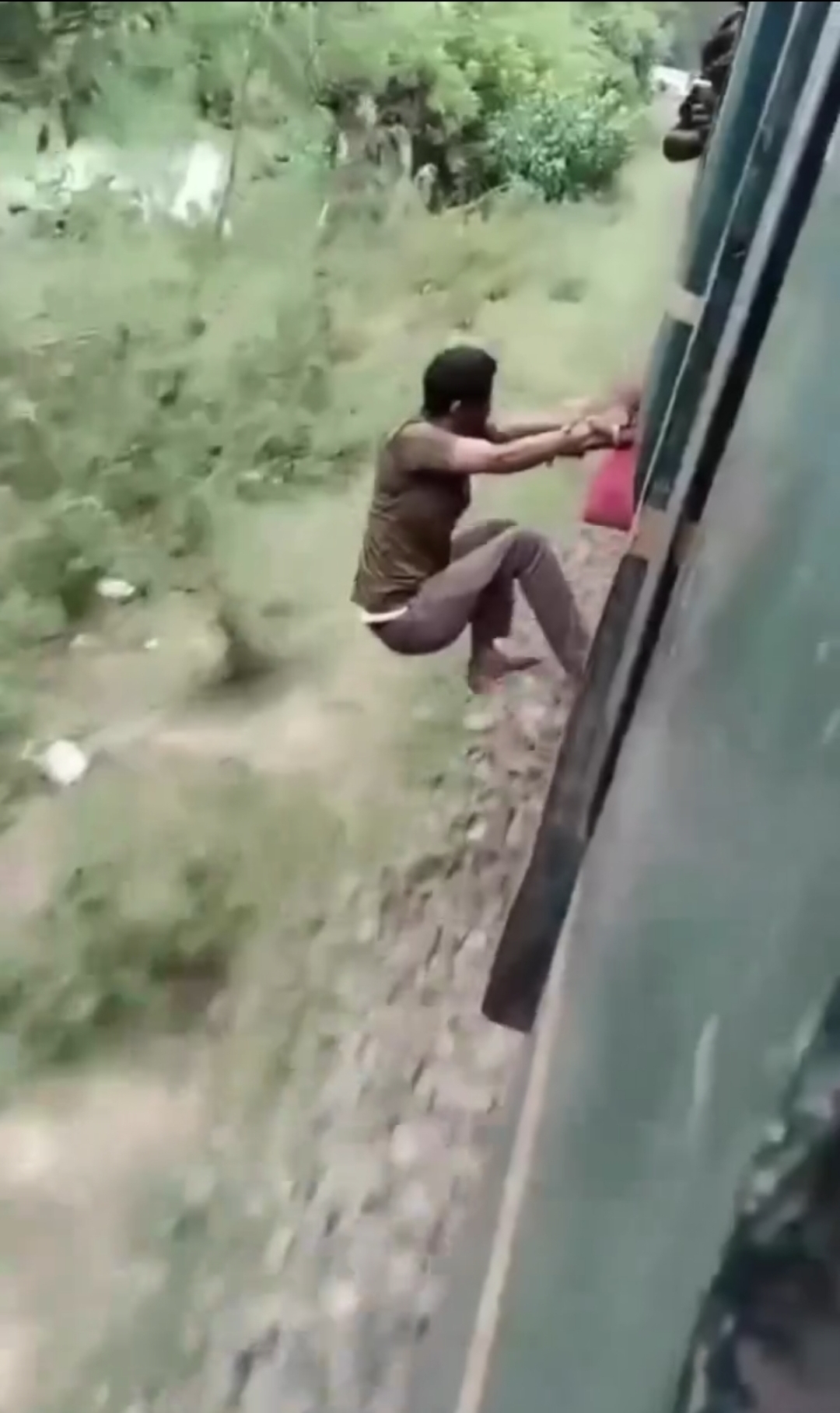 A man was hurled from a moving train and beaten on Sunday in Bogura, Bangladesh. A video of him clinging to the train before falling underneath has gone viral. Fortunately, he returned to his residence in Paril village, Raninagar upazila of Naogaon, on Monday evening following medical treatment for serious injuries.
