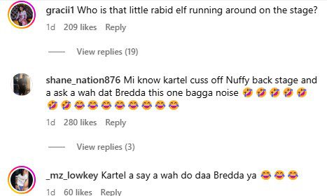 Another viewer wrote, “Mi know kartel cuss off Nuffy back stage and a ask a wah dat Bredda this one bagga noise.”