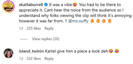 Amid the criticism, promoter Skatta Burrell sought to clarify the misunderstanding regarding MC Nuffy’s set. Under a post where viewers flooded the comments with criticisms, Skatta left a comment expressing that MC Nuffy’s antics excited the audience and made them cheer, which he said was not captured in the video.