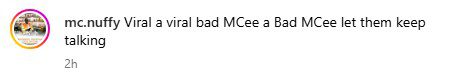 He said that it was definitely a “vibe” that you would have to experience firsthand. “It was a vibe You had to be there to appreciate it. Cant hear the noice from the audience so I understand why folks viewing the clip will think it’s annoying however it was far from. 1 @mc.nuffy ,” he said.