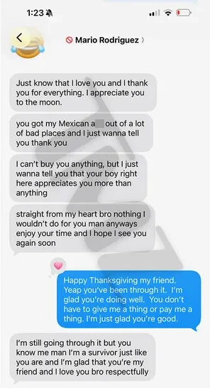 The messages include a Thanksgiving 2024 text in which Rodriguez expressed gratitude to Perry. He thanked Perry for his support when he was going through a rough time and even told him he appreciated him “to the moon,” according to the screenshots.