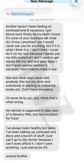 Based on the screenshots, the pair were communicating again on August 31, 2025, when Rodriguez opened up about health struggles, a lack of health insurance, and deep financial stress. In the messages, he reportedly told Perry he was scared and struggling to cope.