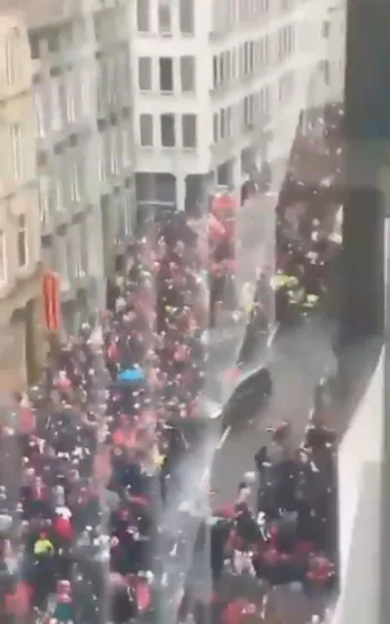 A celebration meant to mark a proud moment for Liverpool FC fans took a terrifying turn on Bank Holiday Monday when a vehicle drove into a dense crowd during the club’s trophy parade. The incident happened around 6 p.m. on Water Street in Liverpool’s business district. In a video filmed from above, a people carrier is seen speeding down the road as fans scatter in panic. Some are seen grabbing loved ones and pulling them out of harm’s way.