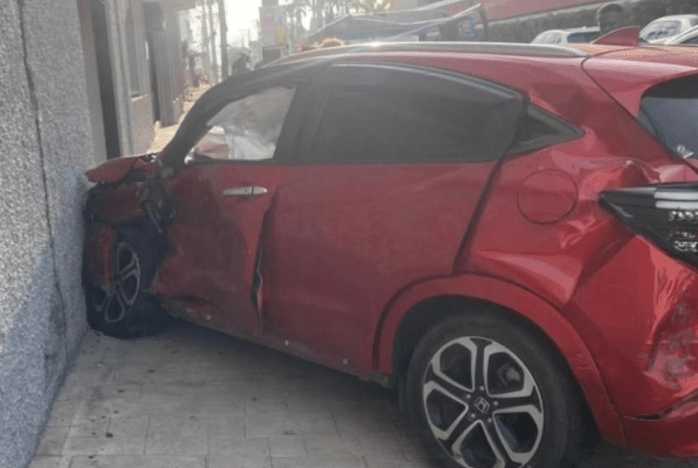 A photo of the scene shows significant damage to the military’s service vehicle and a car. The damages are observed at the front end of the service vehicle, while the red car has damages along the front and the side.