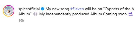 Dancehall icon Spice is taking the reins on her next musical chapter. On Wednesday afternoon, the 42-year-old artiste shared that her newly released single Eleven will be featured on an upcoming album titled Cyphers of the A Album, which she is independently producing.