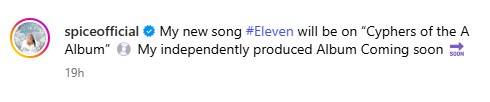 The announcement was made via her official social media pages, where the entertainer, born Grace Latoya Hamilton, posted a behind-the-scenes video clip of herself involved in the album’s production process. “My new song #Eleven will be on ‘Cyphers of the A Album’ My independently produced Album Coming Soon,” she wrote in the caption.