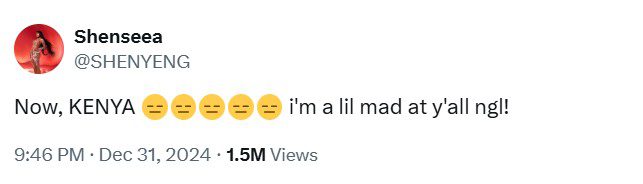 Following the incident, Shenseea expressed her emotions online with a post on the social media platform X, displaying her irritation. “Now, KENYA i’m a lil mad at y’all ngl!” she wrote. The post quickly garnered responses from Kenyan residents who empathized and also criticised the organiser of the event, who had not publicly addressed the situation.