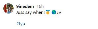 The 9ine, who hails from Kingston, Jamaica, has more than 53,000 followers on Instagram. Viewers left positive responses in the comments as many urged him to release the song. Most of the emoji-filled comments indicate that fans think the single is “fire.”