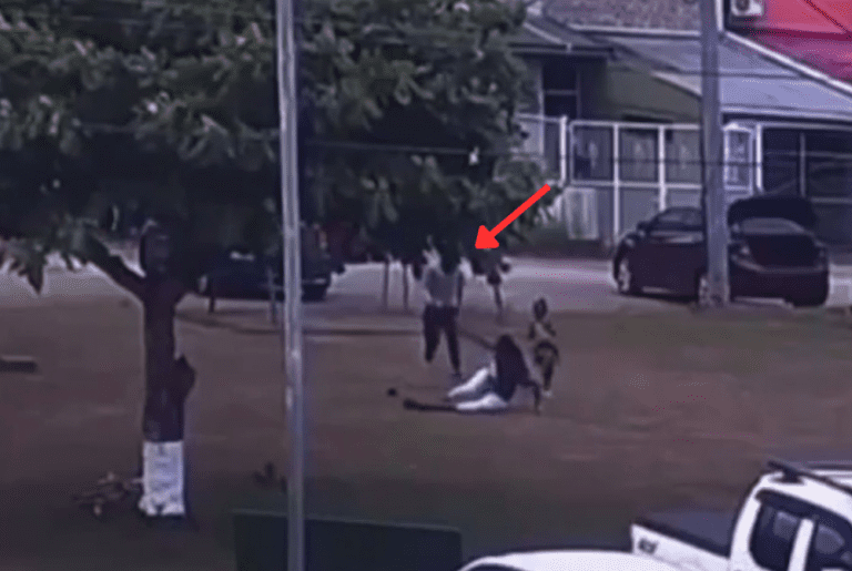 Police said the gunman, wearing a dark grey hoodie and grey track pants, exited the vehicle. A report from Trinidad Express says he first shot Toussaint four times while the father was holding the child and then opened fire at Hanandez, hitting her several times.