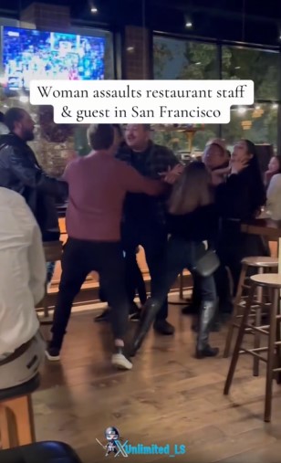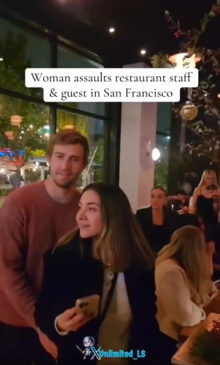 The woman continued to shout at the staff until she realised that they were clearly ignoring her. At that point, she redirected her anger toward another customer who was recording the scene. She lunged at the bystander, aggressively swinging at the customer, before her date eventually grabbed her and brought the situation under control.